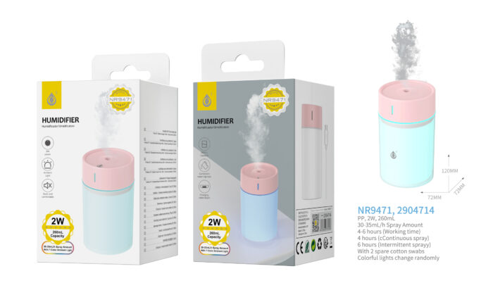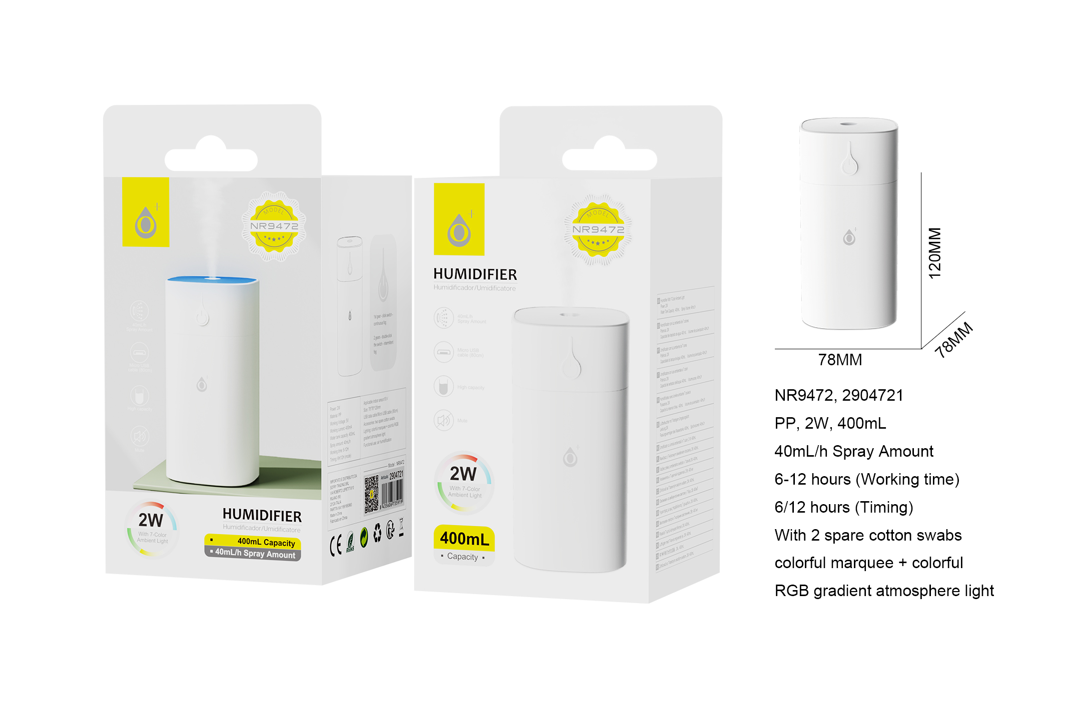 NR9472 BL Humificante Air Con Luz RBG Ambiental 7 color, Capacidad 400ML, 40ml/H , 2W, Blanco