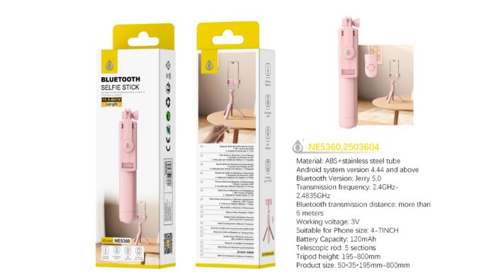NR9476 NE Palo Selfie con Tripode flexible 360°, Bluetooth Incluye mando, Para movil 4-7 Pulgadas, Bateria 120mAh, 16-73.5CM, Negro