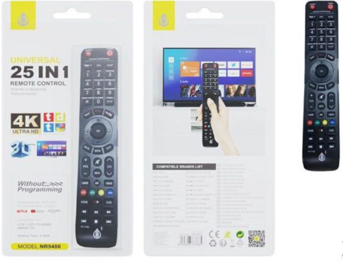 NR9486 NE Mando Universal a Distancia LCD/LED TV 25 EN 1, Sin Programacion, Bateria 2*AAA(No Incluido), Negro
