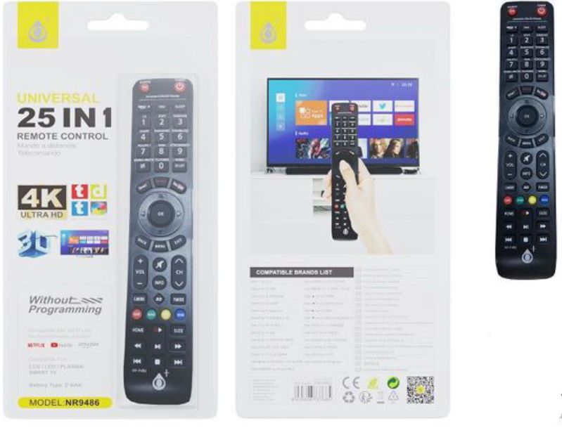 NR9486 NE Mando Universal a Distancia LCD/LED TV  25 EN 1, Sin Programacion, Bateria 2*AAA(No Incluido), Negro