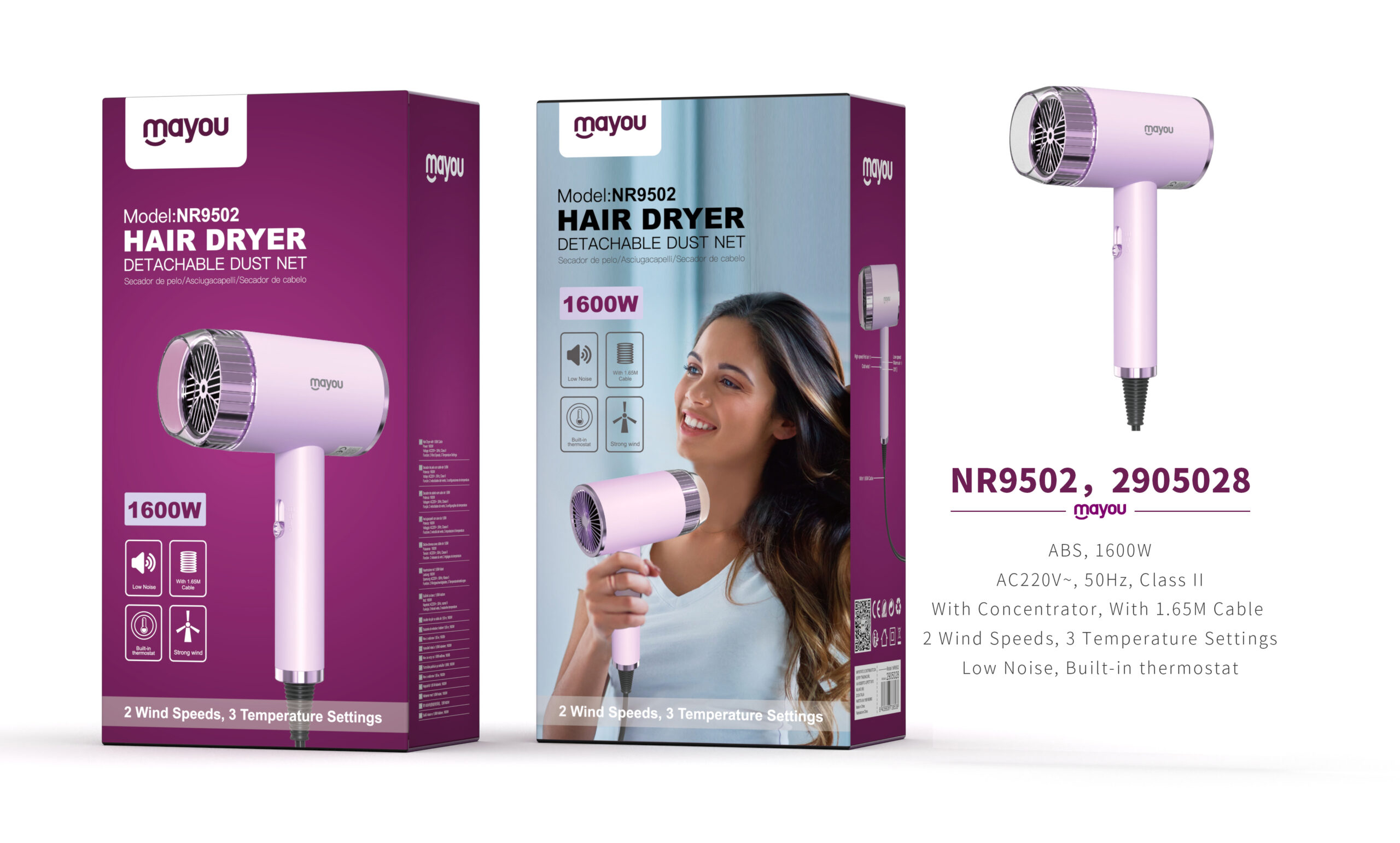 NR9502 VI Secador de pelo con 2 velocidades,3 niveles temperatura, Cable 1.65m, 1600w, Violeta