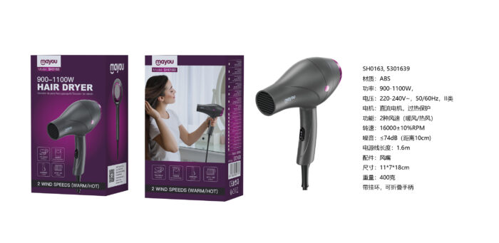 • SH0167 Secador de Pelo Ionico, Con 2 Temperaturas y 2 Velocidades , 1600-1800W, Cable 1.65M, Negro+Morado