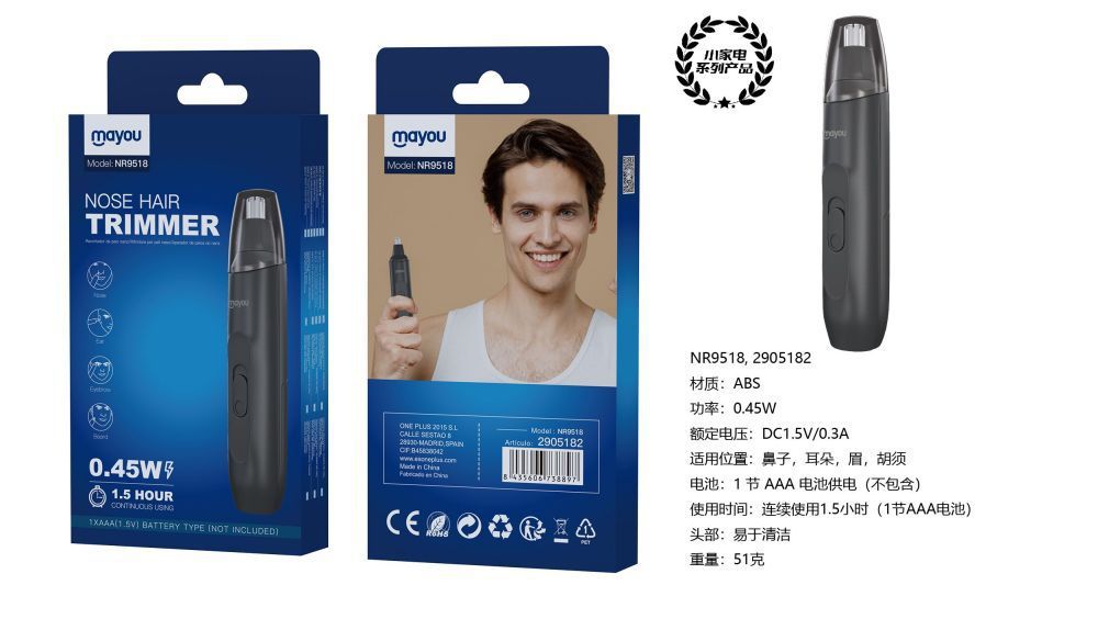 NR9518 NE Maquina Cortarpelo 4 en 1 (Naiz,Barba,Oreja y Cejas) , Bateria 1*AAA (No Incluida) 0.45W, Negro