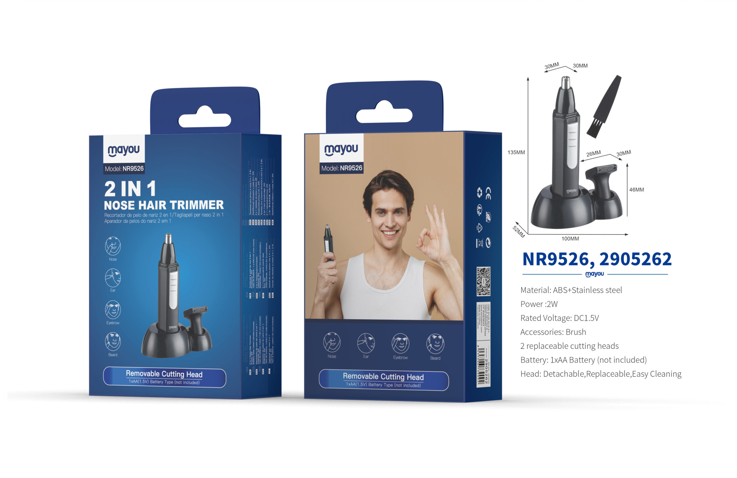 NR9526 NE Maquina Cortarpelo 2 en 1 (Naiz,Barba,Oreja y Cejas)  , Bateria 1*AA (No Incluida), Negro