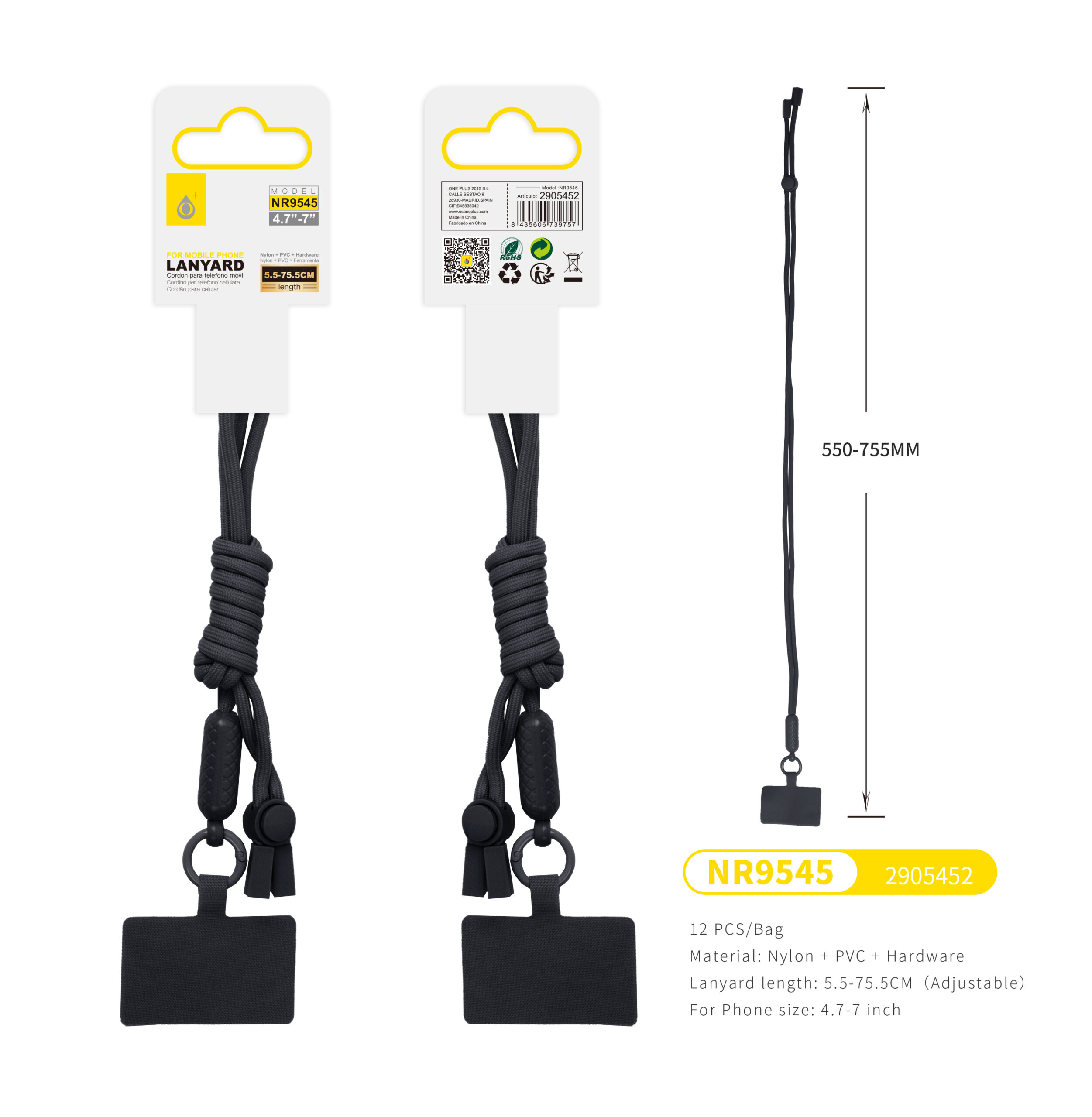 NR9545 NE Correa de Nylon Ajustable 5.5-75CM para Movil 4.7-7 Pulgadas, Pack de 12, Negro