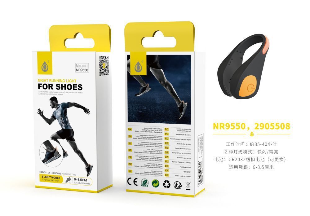 NR9550 Clip Con Luz LED para Zapato, 2 Modos luz(continuo y flash)Bateria CR2032, Luz Naranja