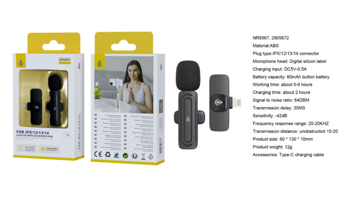 • NR9567 NE Mini Microfono Light-ning Bluetooth con Clip, Bateria 60 mAh, Negro