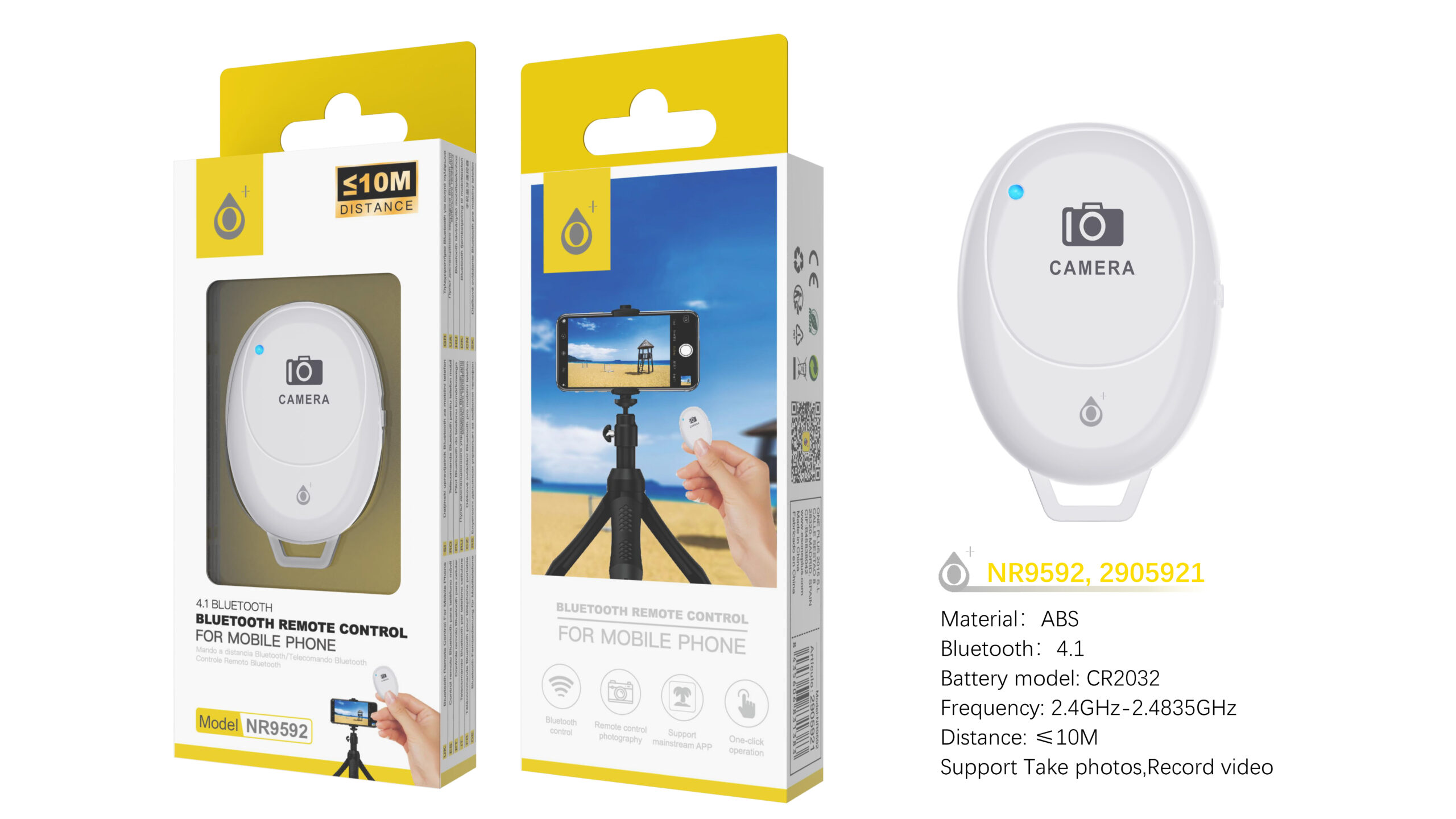 NR9592 BL Control Remoto de movil Bluetooth 4.1, Soporta foto y video, Bateria CR2032, Blanco