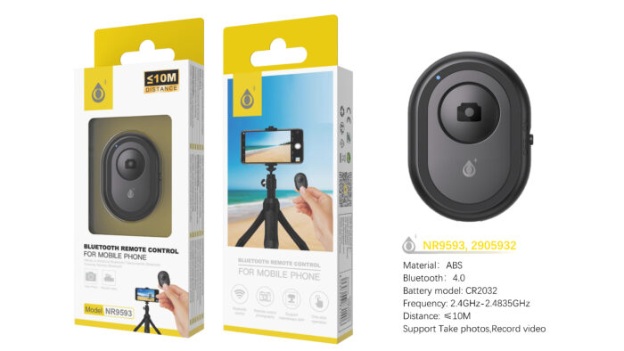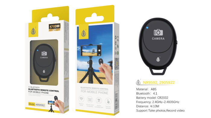 NR9592 NE Control Remoto de movil Bluetooth 4.1, Soporta foto y video, Bateria CR2032, Negro