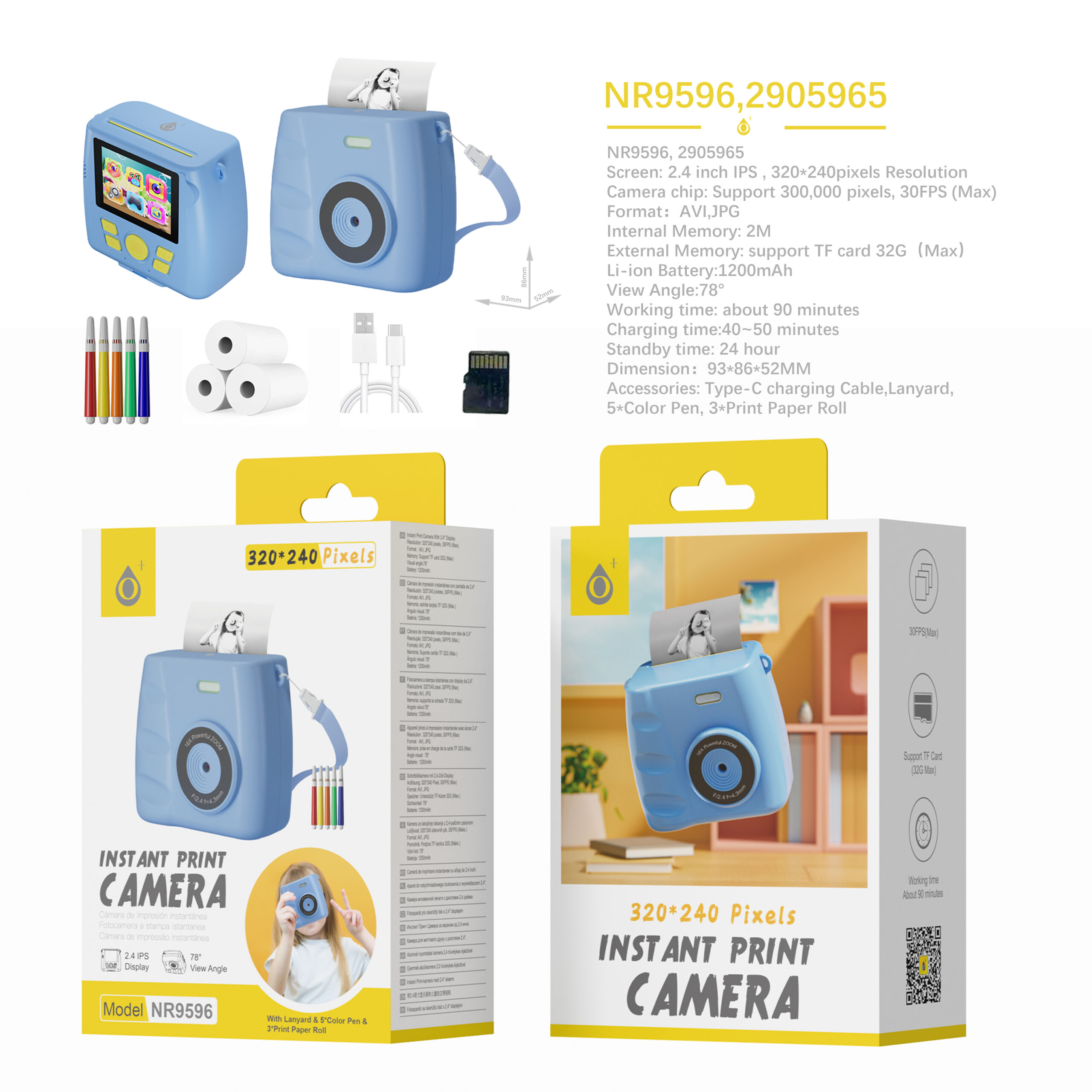 NR9596 AZ Camara de fotos infantil instantaneas, Pantalla TFT 2.4 pulgadas, 300000pixeles/30FPS/32G Max, Bateria 1200mAh, Azul