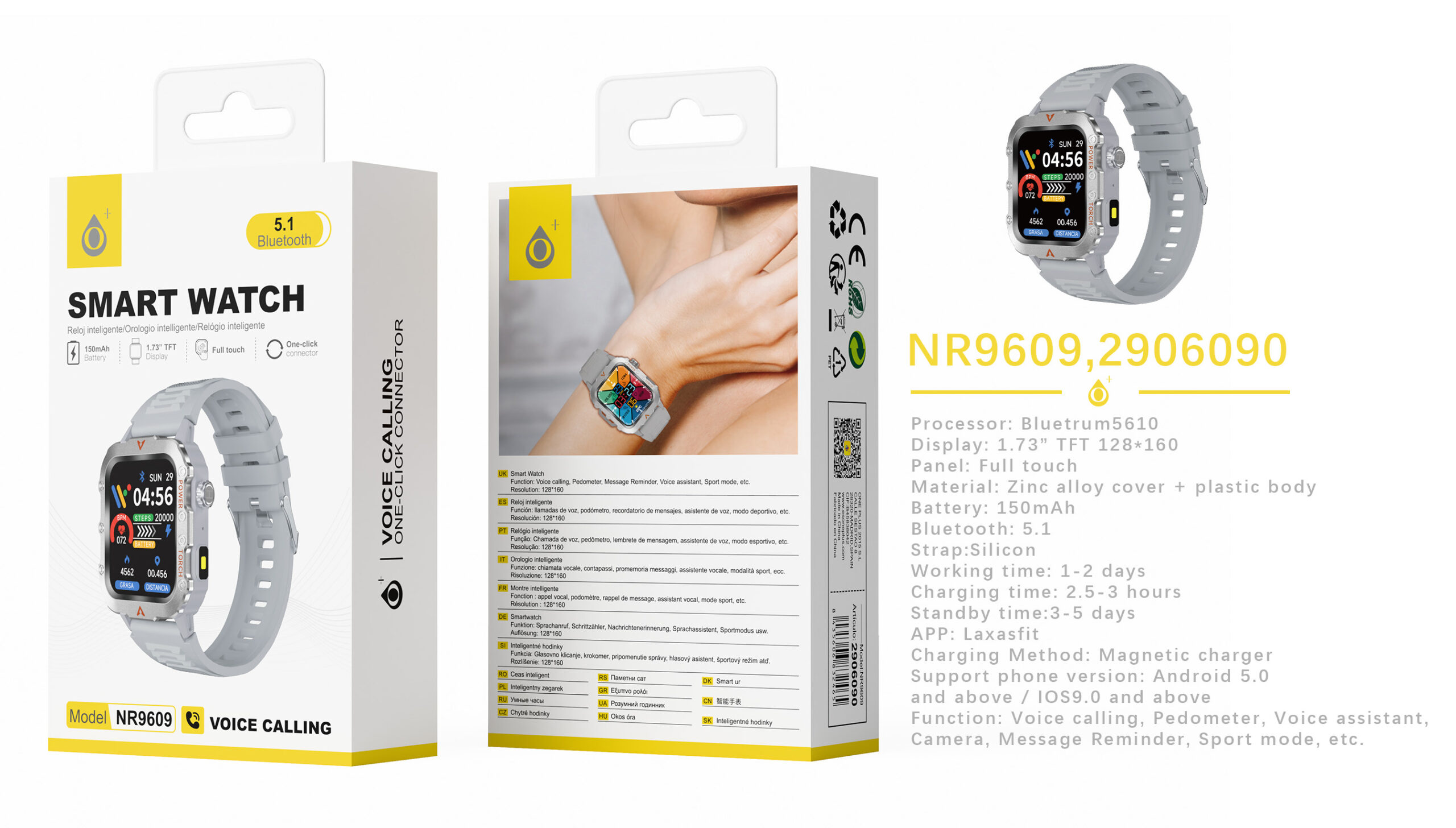 NR9609 GR Reloj Inteligente con bluetooth 5.1, Pantalla tactil de 1.73 pulgadas, Soporta llemadas, Asistente de Voz, Bateria 150mAh, Blanco