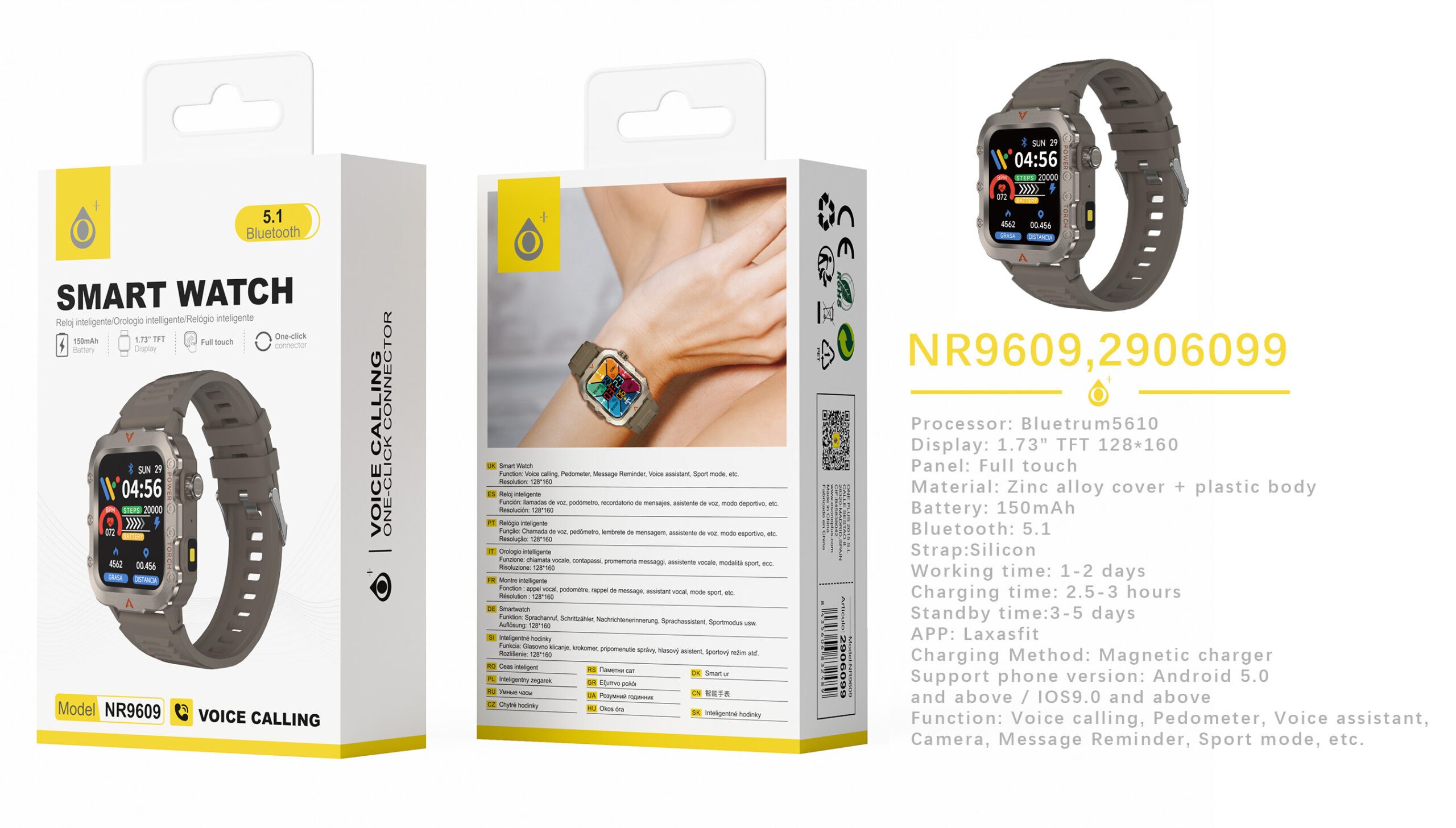 NR9609 MA Reloj Inteligente con bluetooth 5.1, Pantalla tactil de 1.73 pulgadas, Soporta llemadas, Asistente de Voz, Bateria 150mAh, Marron