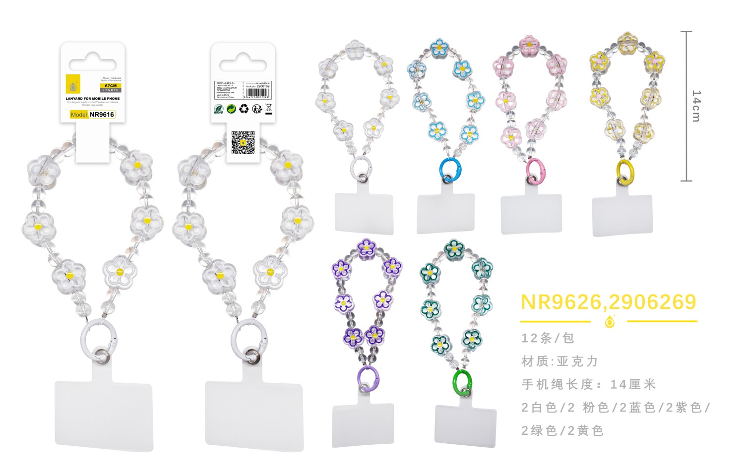 NR9626 Correa de Movil con Bolas de Acrilico, 14CM,