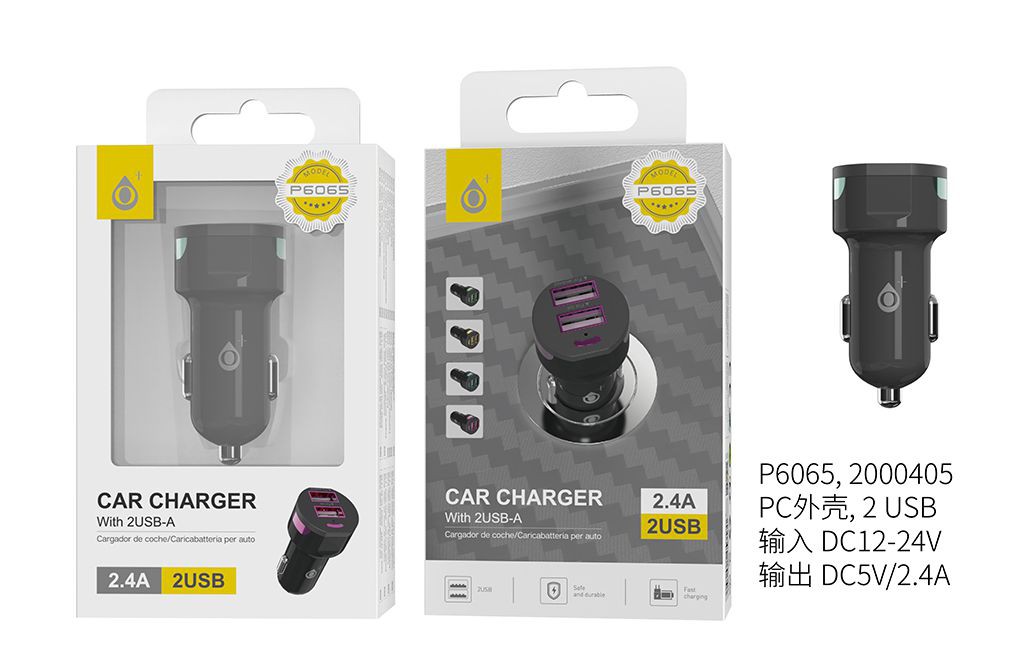 P6065 NE+AZ Cargador Mechero Omega, 2USB 2,4A, Negro y Azul