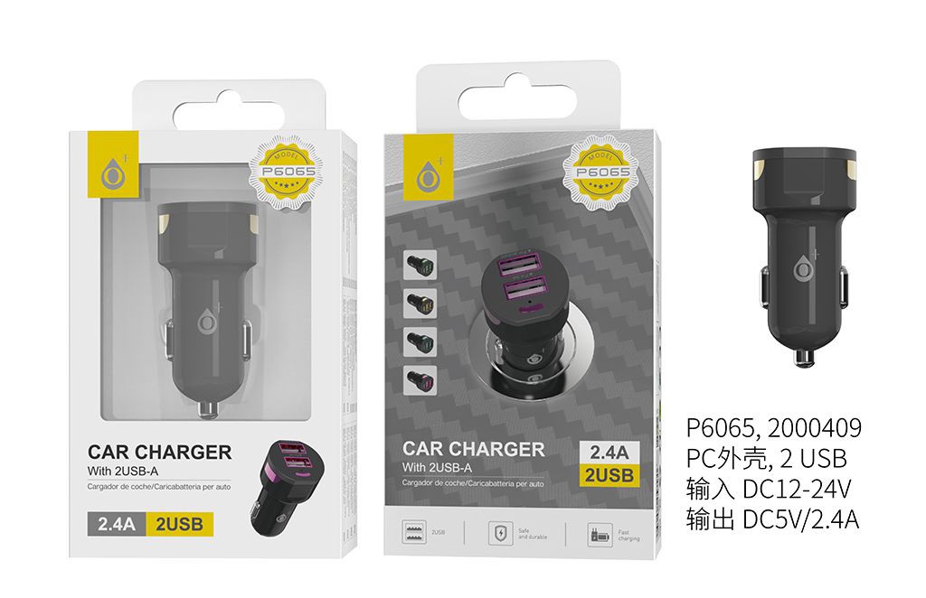 P6065 NE+OR Cargador Mechero Omega, 2USB 2,4A, Negro y Oro