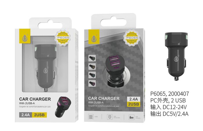P6065 NE+VE Cargador Mechero Omega, 2USB 2,4A, Negro y Verde