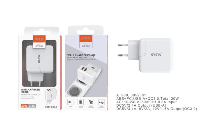 • AT988 BL Cargador de Red Rapida Alta Calidad M.TK Premium Eliria sin cable