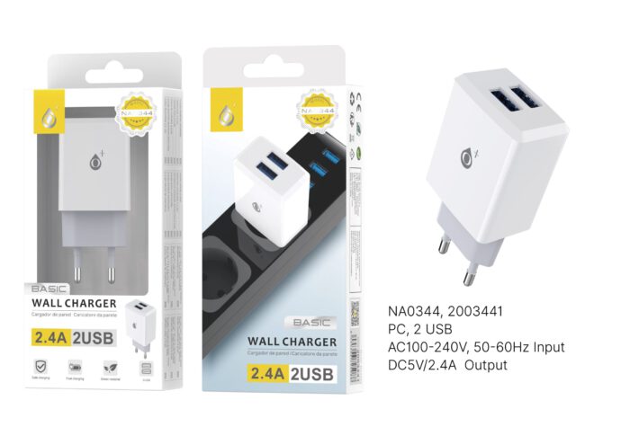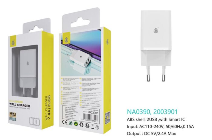 NA0390 BL Cargador de Red KAI 2 USB Con Smart Chip, Sin Cable , 2.4A, Blanco