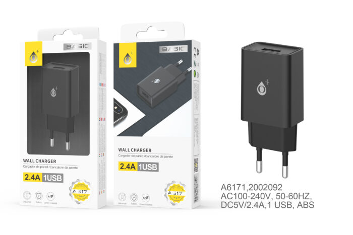 • NA0355 NE Cargador de Red Doll 1 USB sin cable, 5V/2.4A, Negro