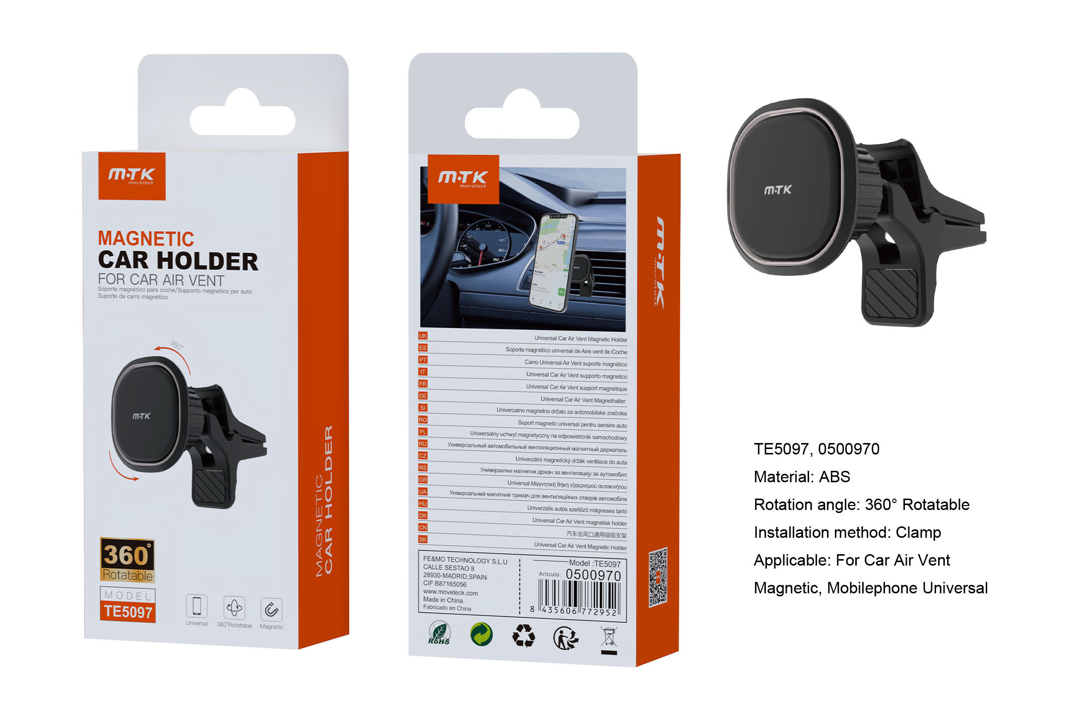 EAN: 8435606772952 Categoría: Soportes de coche Magneticos SKU: 0500970
