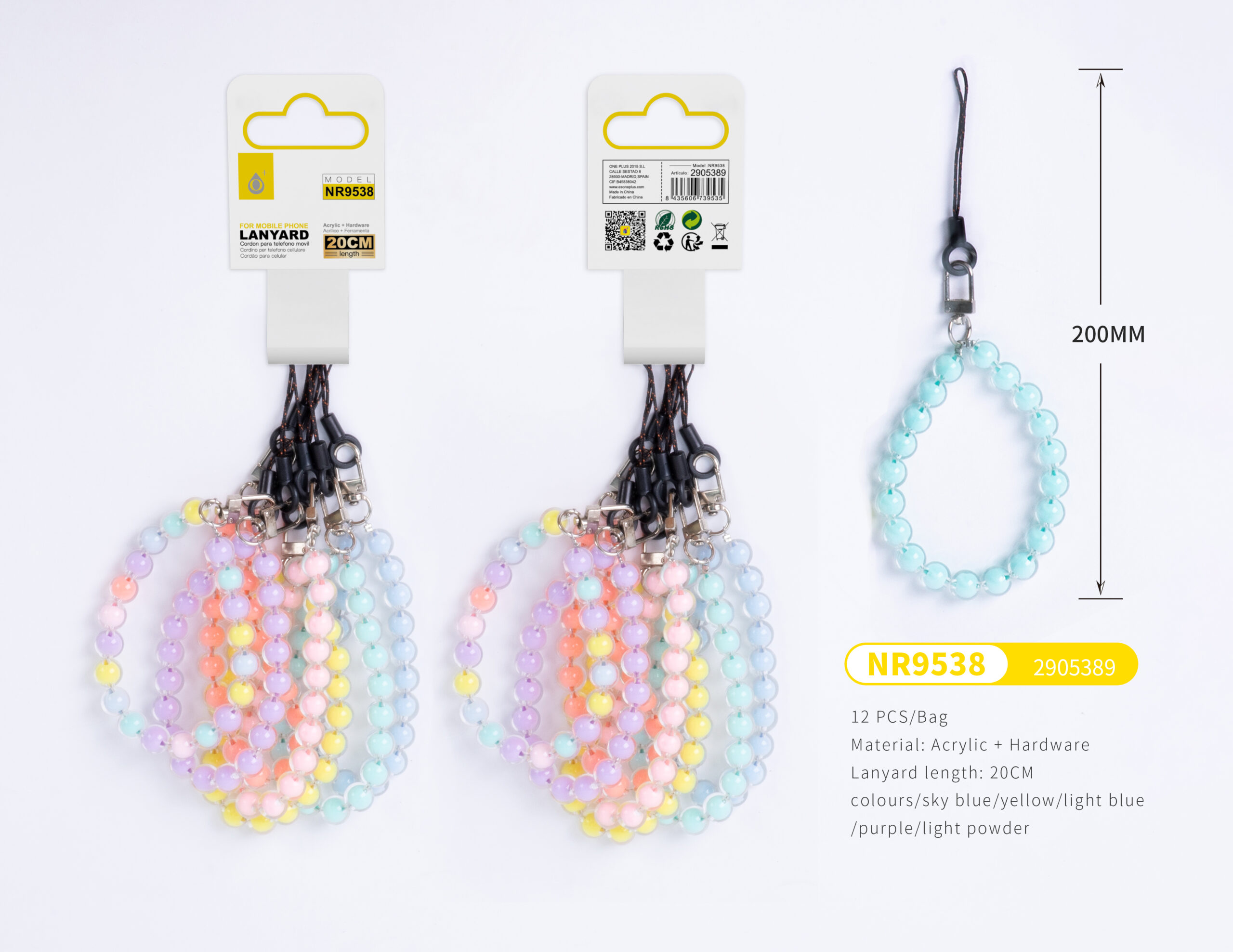 NR9538 Correa de Movil con Bolas de Acrilico, Pack de 12 Color surtido