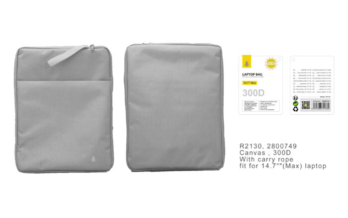 R2122 GR Maletin de lona repelente al agua para portatil hasta 11.6 pulgadas,Gris