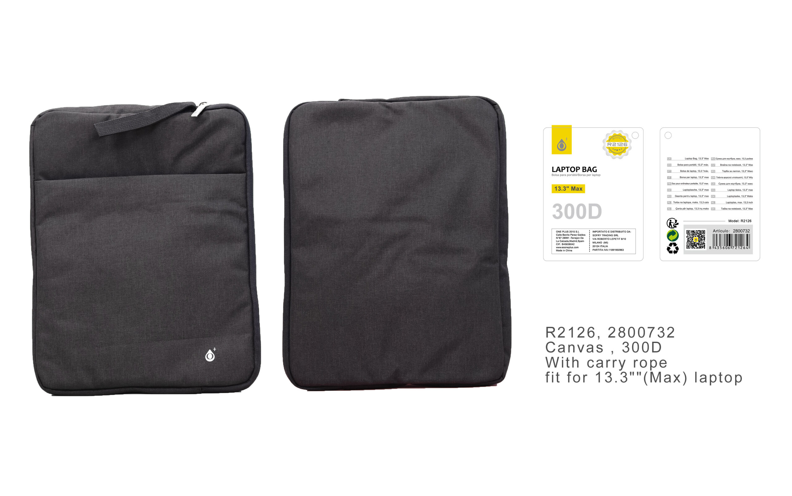 R2126 NE Maletin de lona repelente al agua para portatil hasta 13.3 pulgadas,Negro