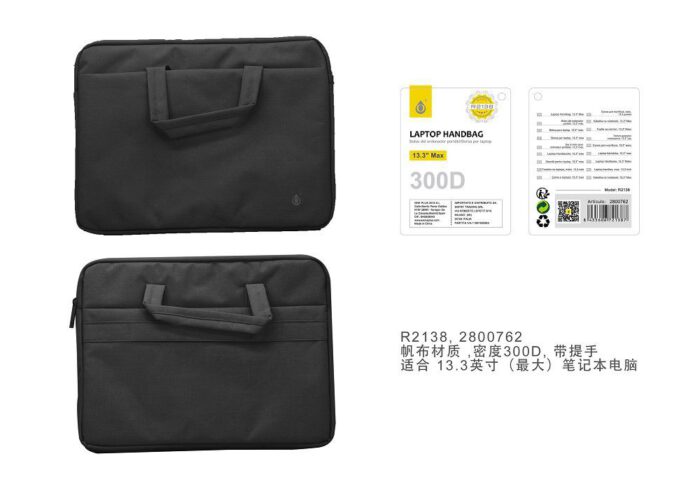 R2138  Maletin de lona con mango repelente al agua para portatil hasta 13.3 pulgadas,Negro