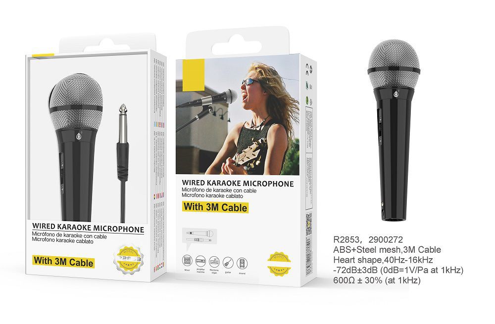 R2853 Microfono Karaoke con Cable, 3M Negro