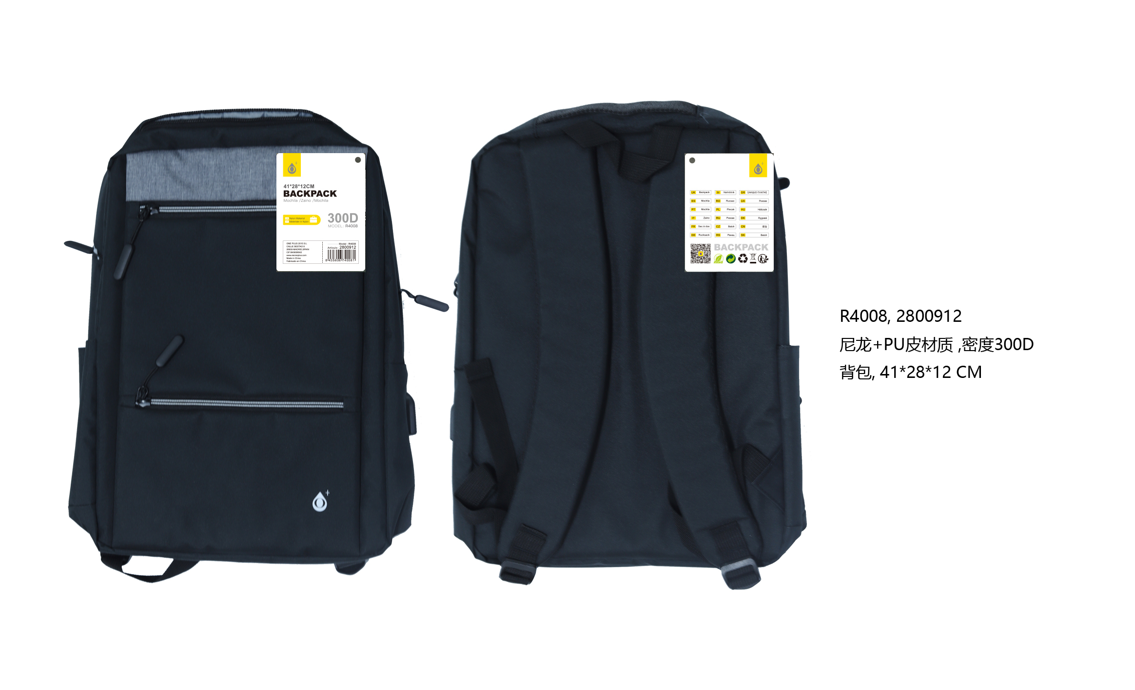 R4008 NE Mochila Nylon+PU, Repelente al agua, Para Portatiles de 16″ Max, Negro
