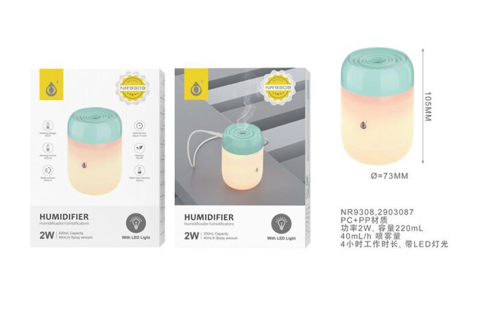 • NR9308 VE Humidificador Aroma Air luz Led ,220ML , 40ml/H,2W, Verde