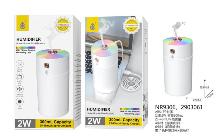 • NR9308 BL Humidificador Aroma Air luz Led ,220ML , 40ml/H,2W, Blanco