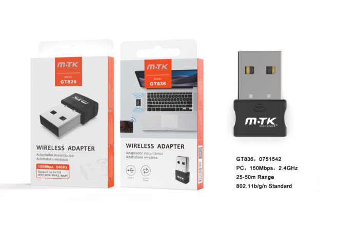• GT836 Mini Adaptador Wifi - USB, 150Mbps Negro