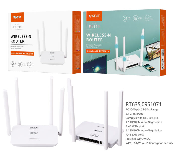 RT635 BL Router de Wifi inalambrico con 4 antenas, 4 Puertos LAN y 1 Puerto WAN, 300 Mbps , Blanco