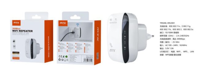 • TR9201 BL Mini Router con funcion de Repetidor de WIFI 2.4GHz, Velocidad 300Mbps, Blanco