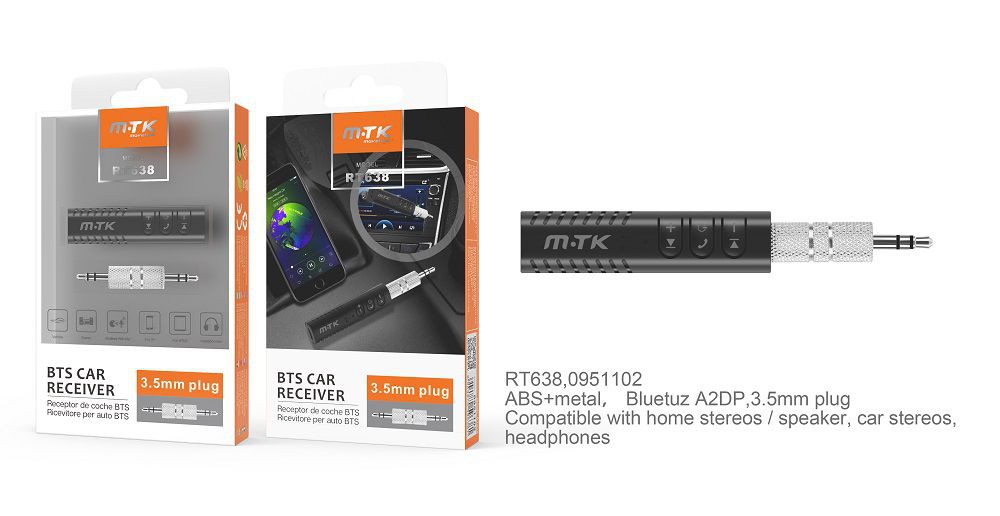 RT638 NE Receptor Bluetooth con conector 3.5mm para Coche /Iphone/Ipad/Auriculares, Negro