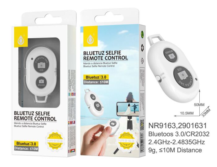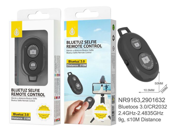 • NR9593 NE Control Remoto de movil Bluetooth 4.0 con indicador de luz, Soporta foto y video, Bateria CR2032, Negro