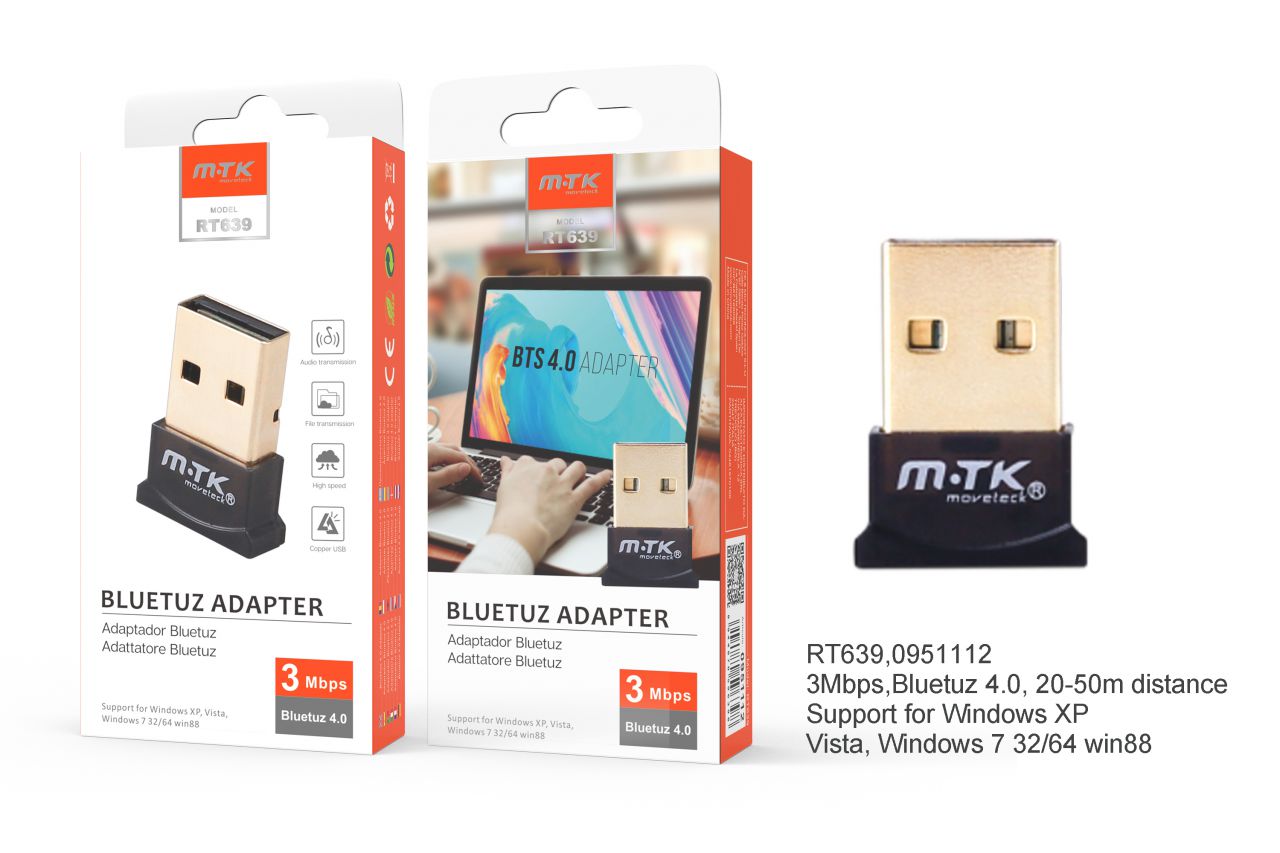 RT639 NE Adaptador USB Bluetooth 5.0, distancia de trabajo 20-50m, Negro