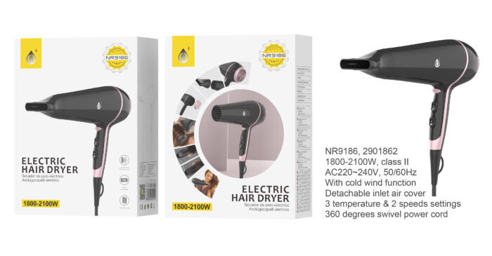 • NR9358 NE Secador de Pelo Plegable, 2 Temperaturas y 2 Velocidades , con Concentrador, 1000W,Cable 1.6M, Negro
