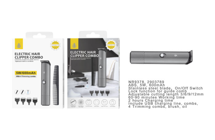 • NR9378 NE Maquina Cortarpelo con 4 peines , ( incluye kit de limpieza y un peine ),Bateria 600 Recargable USB 5W, Negro