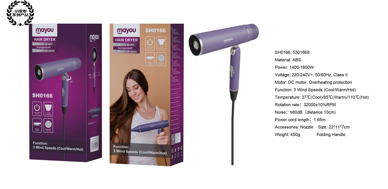 SH0166 MO Secador de Pelo Electrico Plegable, 3 Grados de Temperatura(37/85/110°C),1400-1600W, Cable 1.65M, Morado