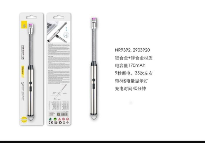 • NR9392 NE Encendedor USB electrico de Cocina, Material Acero+Zinc alloy, Cuello flexible, Con indicador de luz, Bateria 170mAh Recargable, Negro