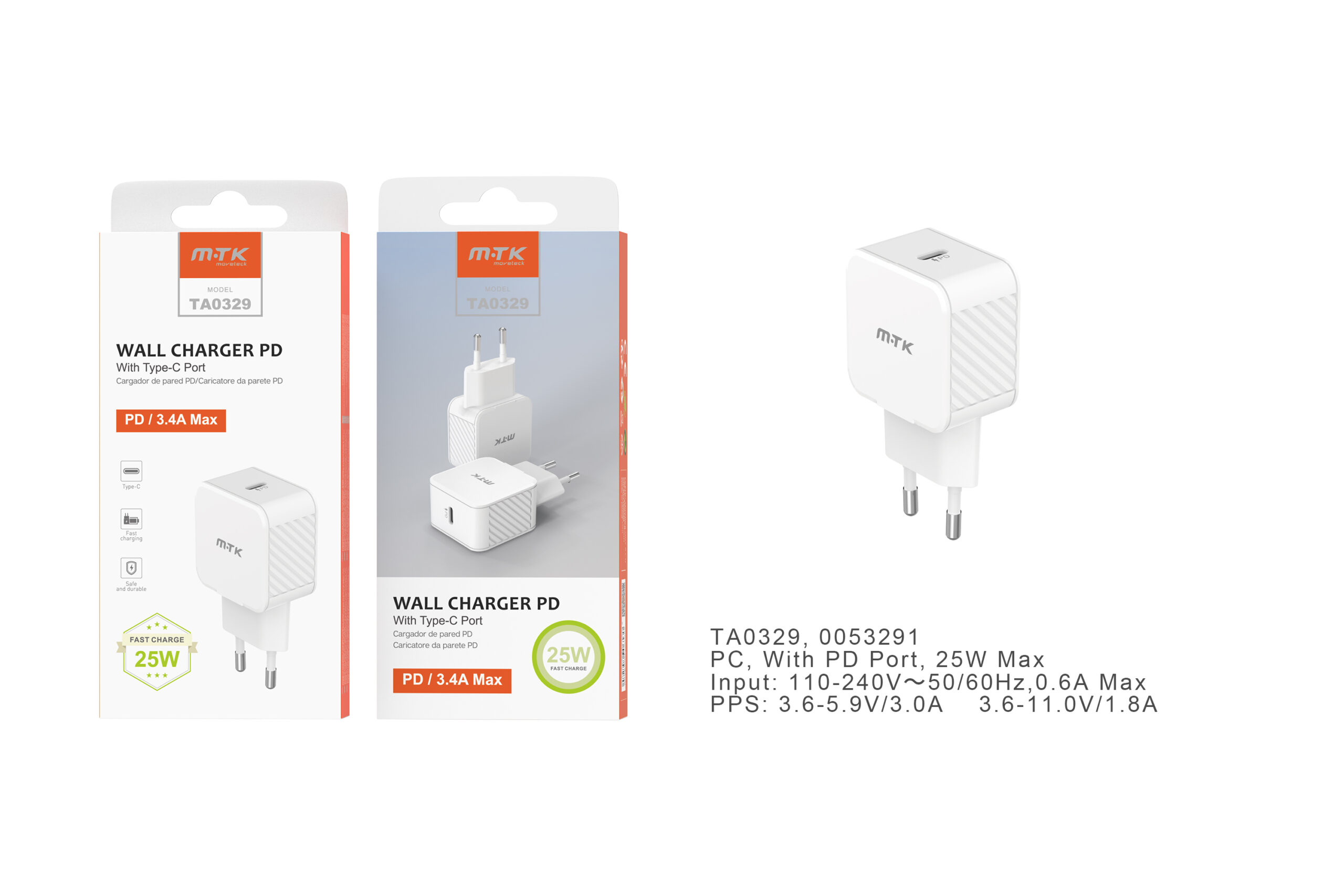 TA0329 BL Cargador de Red Rapida Fay , 1 puerto PD, Sin Cable 25W/3.4A(Max), Blanco
