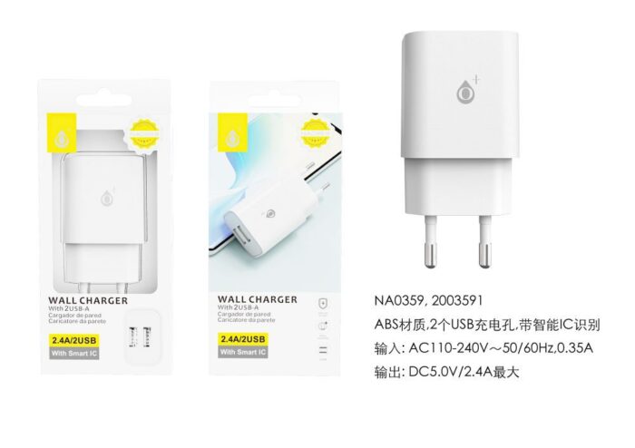 • NA0344 BL Cargador de Red S.Basic JODY 2 USB sin cable, 2.4A,Blanco
