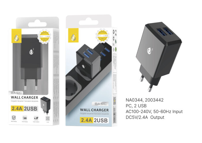 • A6156 NE Cargador de Red S.BasicTebe 2 USB sin cable, 2.4A,Negro