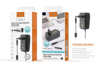 TA0366 NE Cargador de Alimentacion manual Universal con 6 Enchufes, 36W,9V-24V 2.5A , Negro