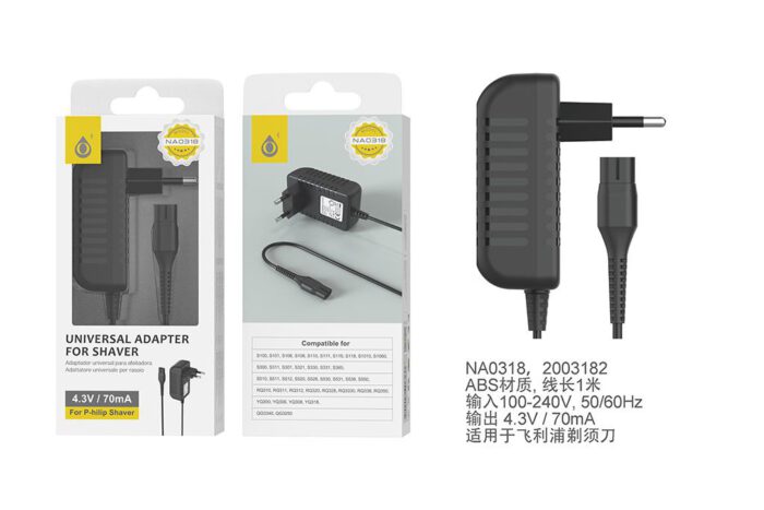 • NA0316 NE Cargador universal para Afeitadora P-hilip , 8V 100mA ,Cable 1 M,Negro