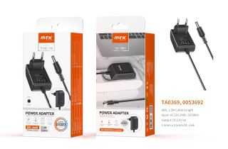TA0369 NE Cargador Universal con Conector Jack DC,12W, 12V/1A ( 5.5mm X 2.5mm) 1.2M, Negro