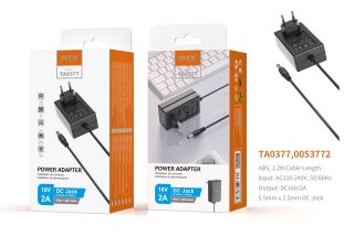 TA0377 NE Cargador Universal con Conector Jack DC,32W, 16V/2A ( 5.5mm X 2.5mm) 1.2M, Negro