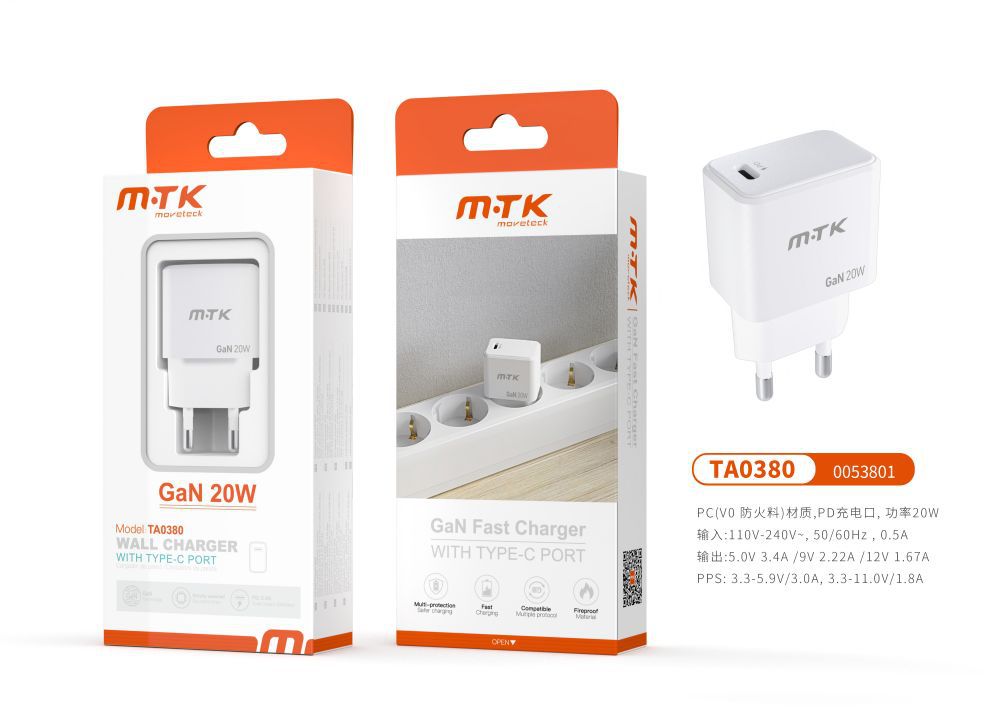• TA0347 BL Cargador Rapido de Pared Marga Sin cable , Entrada Type-C(PD)+QC3.0)/30W/3A Max , Blanco